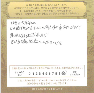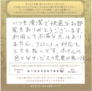 いつも清潔で快適なお部屋をありがとうございます。利用して不満な点はあ...