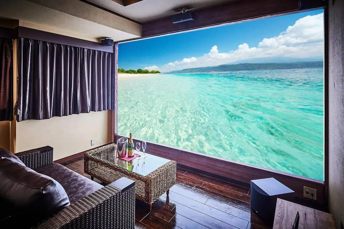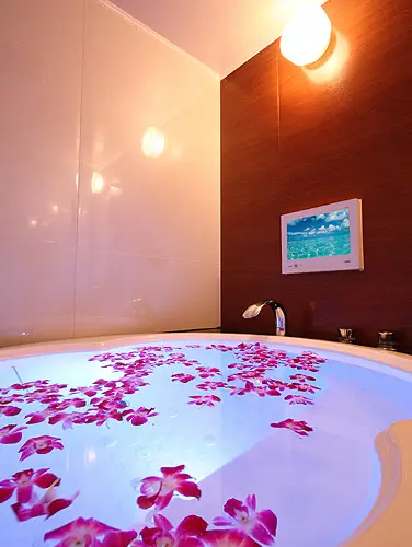 限定2室のこのルームは、広さ何と100㎡を誇り、贅沢すぎるほどの充実した設備と空間をご満喫頂けます。 120インチプロジェクター、5.1chサラウンドシステム、専用岩盤浴、浴室TV付き大型バブルバスなど、いたれりつくせりの快適空間をご用意しております。