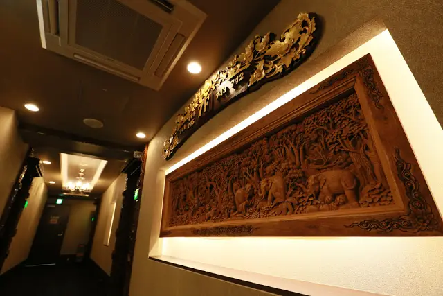 各フロアのエレベーターを降りると目の前には巨大なウッドレリーフがご覧いただけます。