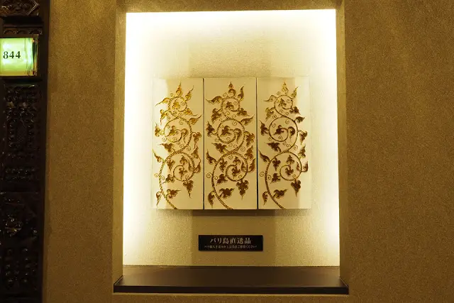 お部屋へ向かう廊下にもバリの伝統工芸の作品が飾られています。