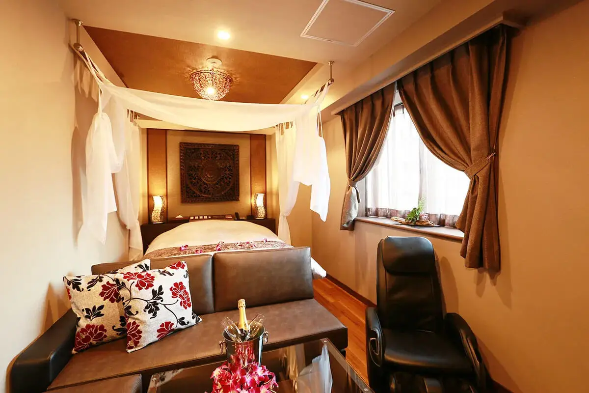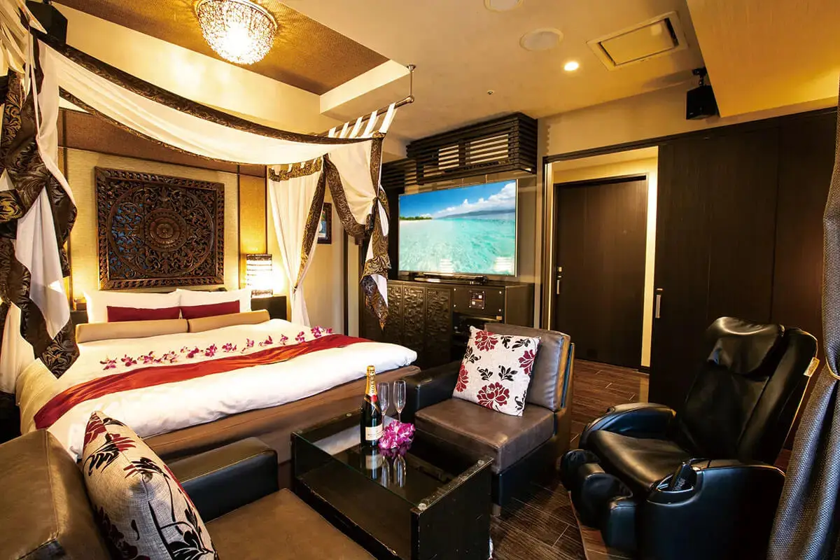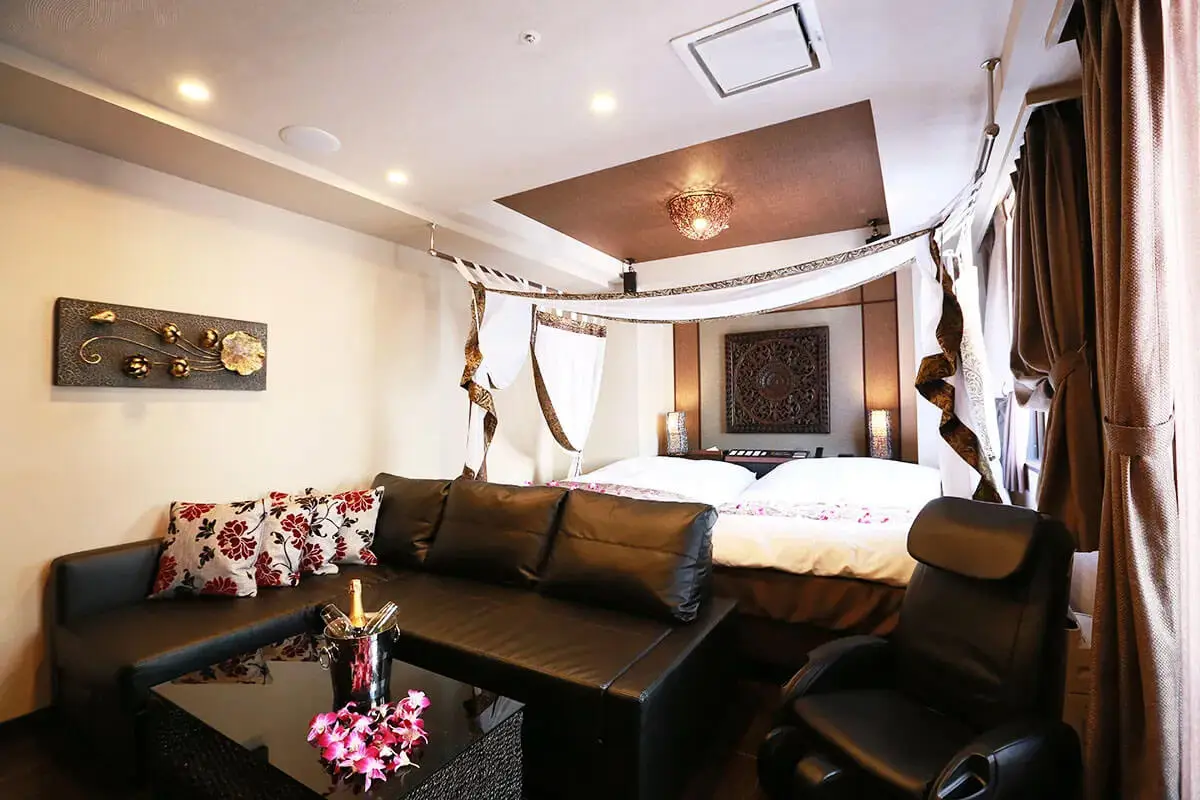 プリティルーム同様に充実の基本設備に加え、3人でもご利用いただける広めのカウチソファと日ごろの疲れを揉みほぐしてくれるマッサージチェアまでございます。