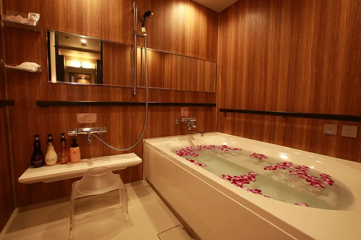 たくさんのお花に包まれて入るお風呂は日常を忘れてリラックスさせてくれます。