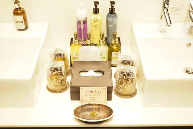 客室には洗顔料、クレンジング、化粧水や乳液など、 国内大手ブランドのスキンケア化粧品を取り揃えております。