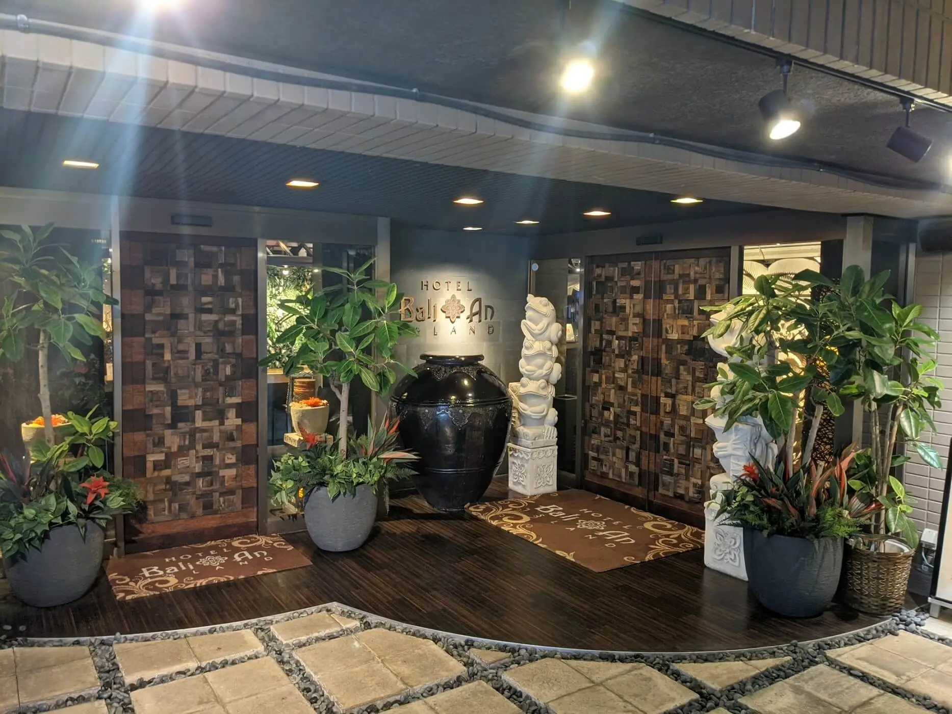 バリ島のリゾートホテルをイメージして作られたロビー。バリ特有のお香の香が南国リゾート特有の癒しの時間を演出してくれます。