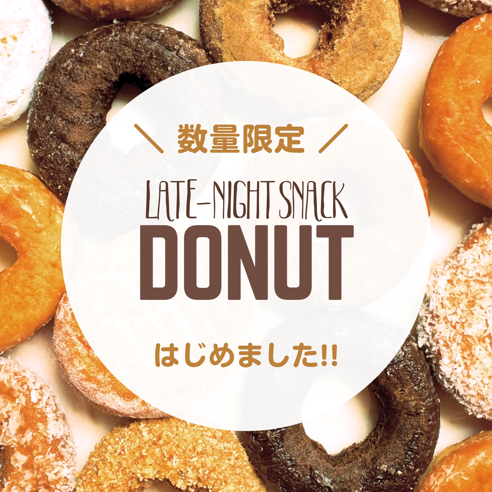 夜の背徳ドーナツご用意しました♪ トッピングコーナーでデコレーションし放題!! ちょっとだけ甘いもの食べたい…小腹を満たしたい…そんな夜のお供にプレーンとココアの2種類のドーナツをご用意いたしました!毎日限定数量なくなり […]