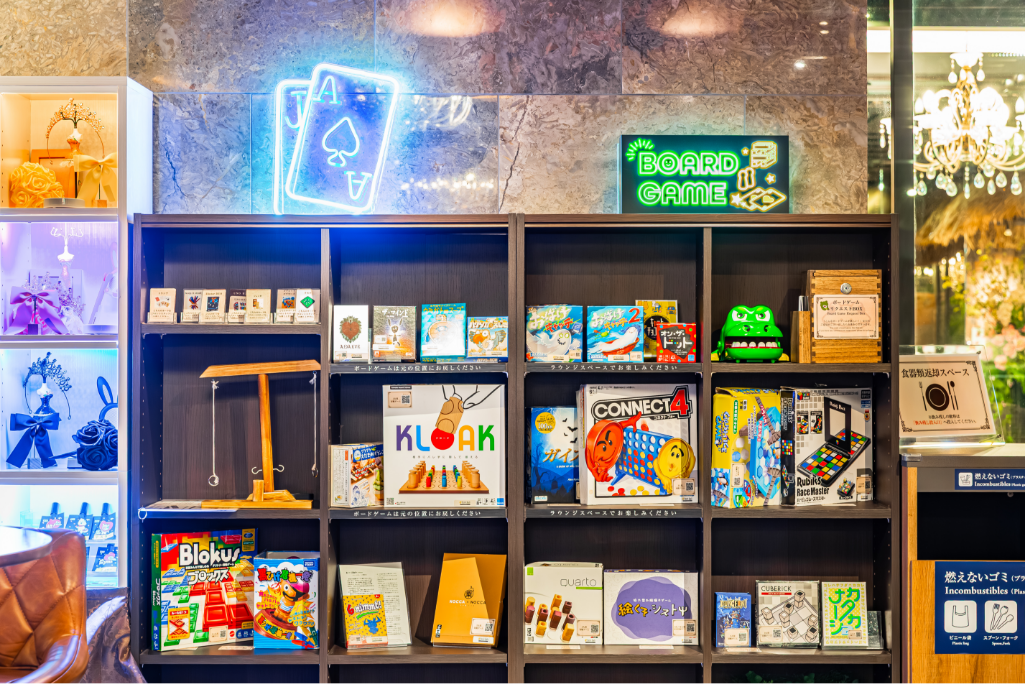足湯・マッサージチェア・ハンモック・ボードゲーム