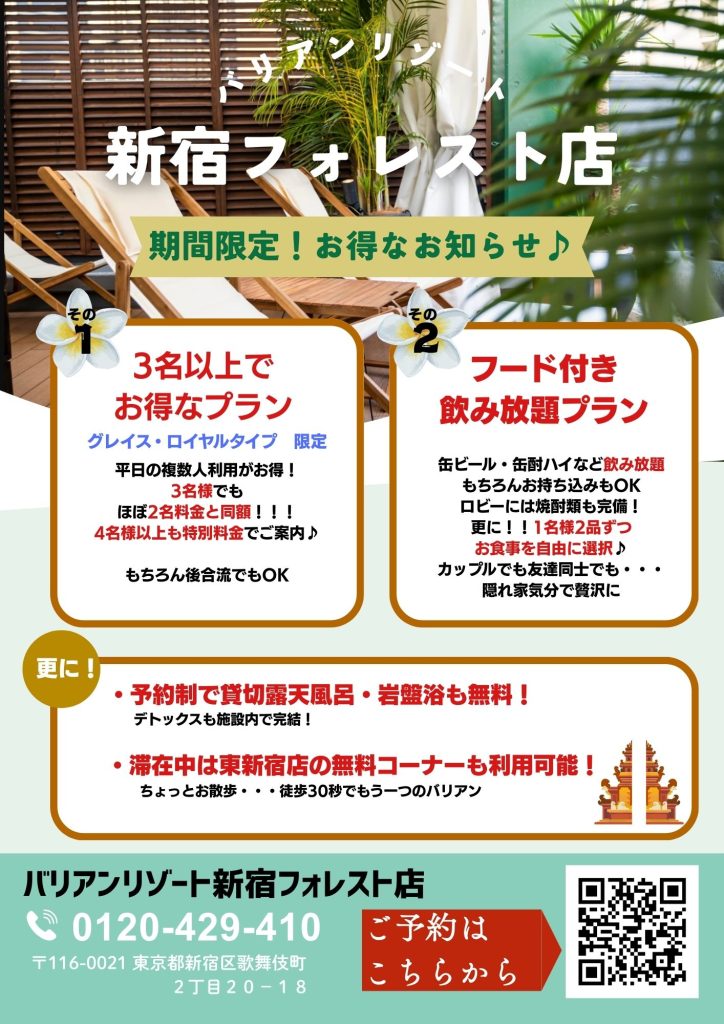 ホテルバリアンリゾート新宿フォレスト店からのお知らせ・キャンペーン情報