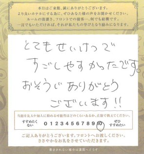 ~お客様のご満足が私達の喜びです~ホテルバリアンリゾートをご利用いただいたお客様から頂いたアンケート・口コミを掲載しております。