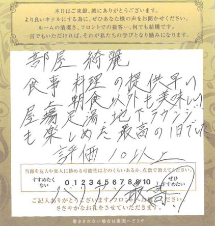 ホテルバリアンリゾート 嬉しいお言葉頂きました