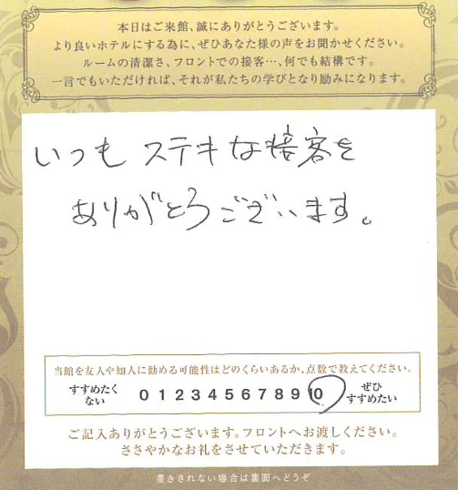 ホテルバリアンリゾート 嬉しいお言葉頂きました