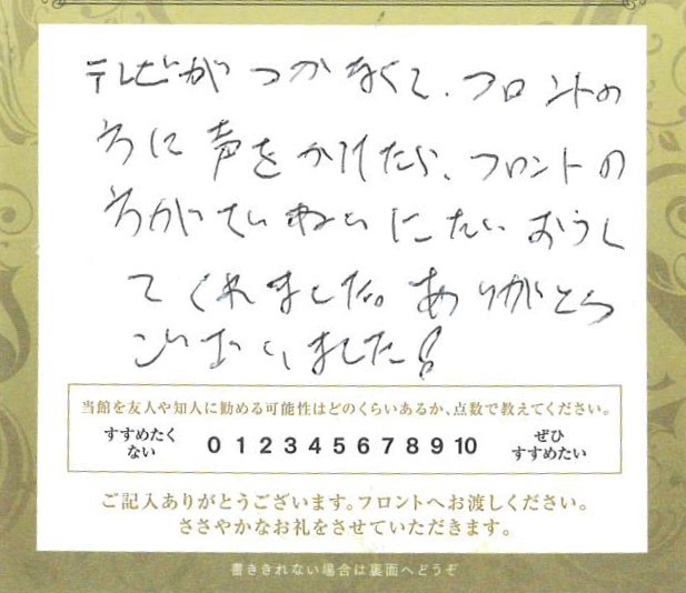~お客様のご満足が私達の喜びです~ホテルバリアンリゾートをご利用いただいたお客様から頂いたアンケート・口コミを掲載しております。