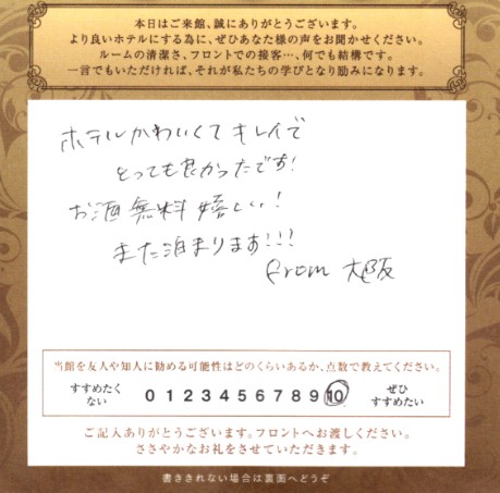 ~お客様のご満足が私達の喜びです~ホテルバリアンリゾートをご利用いただいたお客様から頂いたアンケート・口コミを掲載しております。
