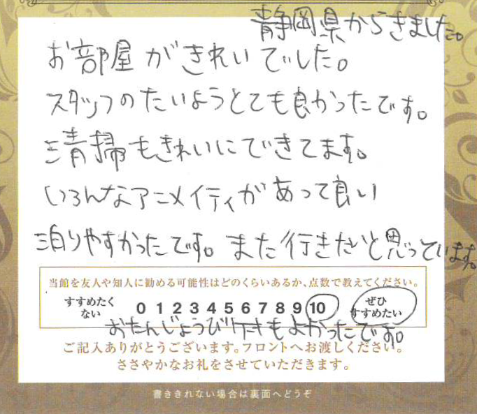 ~お客様のご満足が私達の喜びです~ホテルバリアンリゾートをご利用いただいたお客様から頂いたアンケート・口コミを掲載しております。