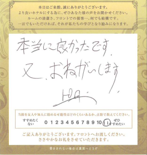 ホテルバリアンリゾート東新宿店からの嬉しいお言葉頂きました
