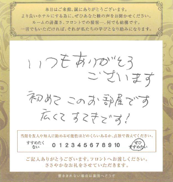 ホテルバリアンリゾート新宿フォレスト店からの嬉しいお言葉頂きました