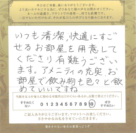 ~お客様のご満足が私達の喜びです~ホテルバリアンリゾートをご利用いただいたお客様から頂いたアンケート・口コミを掲載しております。