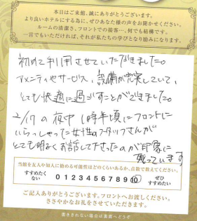 ホテルバリアンリゾートフォレスト池袋西口店からの嬉しいお言葉頂きました