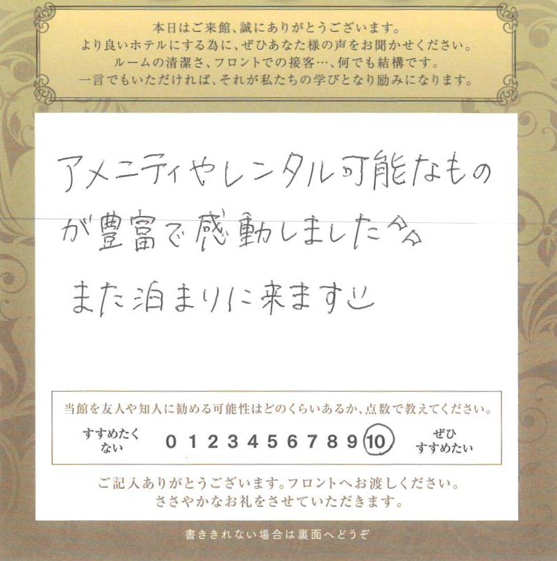 ~お客様のご満足が私達の喜びです~ホテルバリアンリゾートをご利用いただいたお客様から頂いたアンケート・口コミを掲載しております。