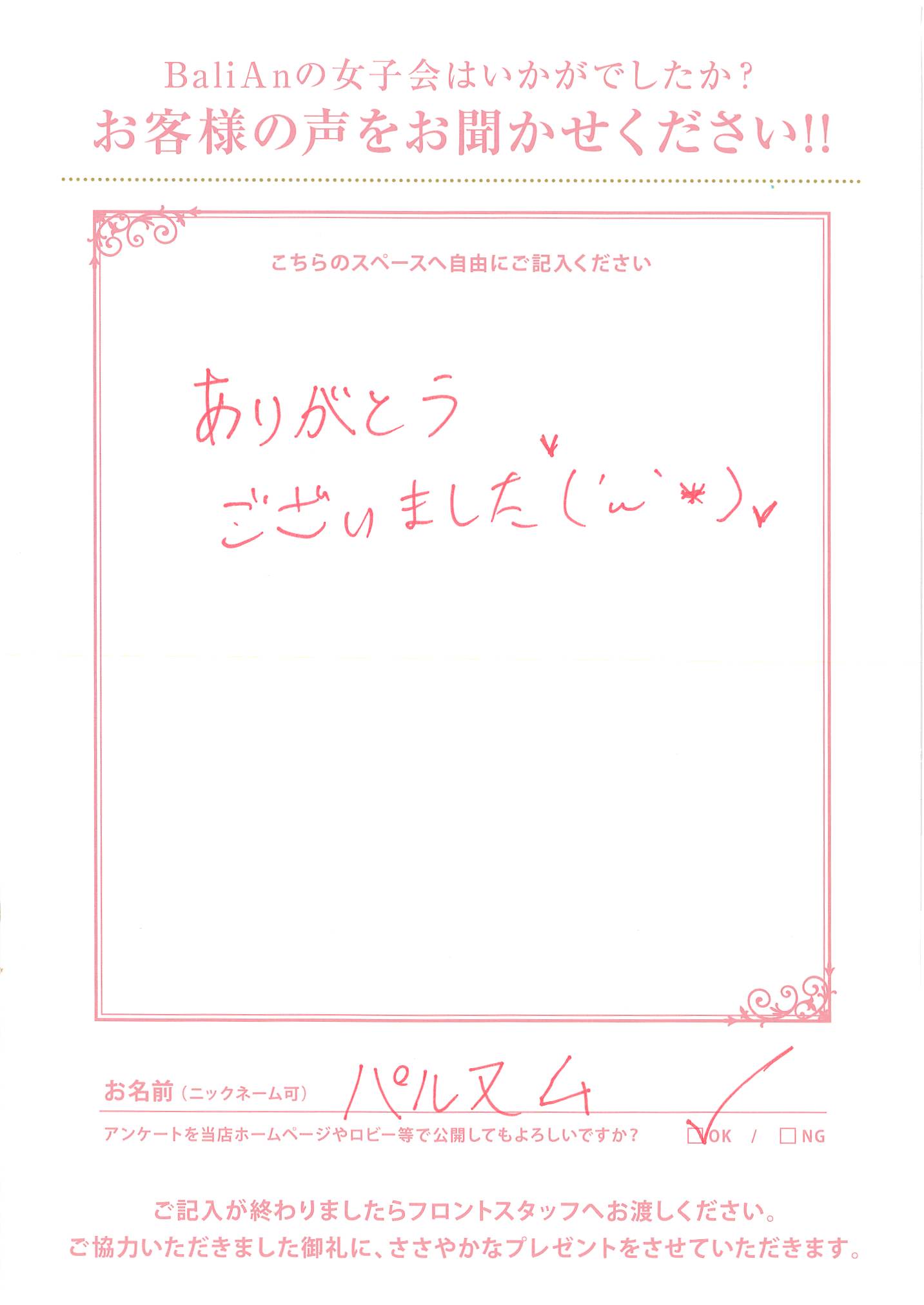 ホテルバリアンリゾートの女子会嬉しいお言葉頂きました