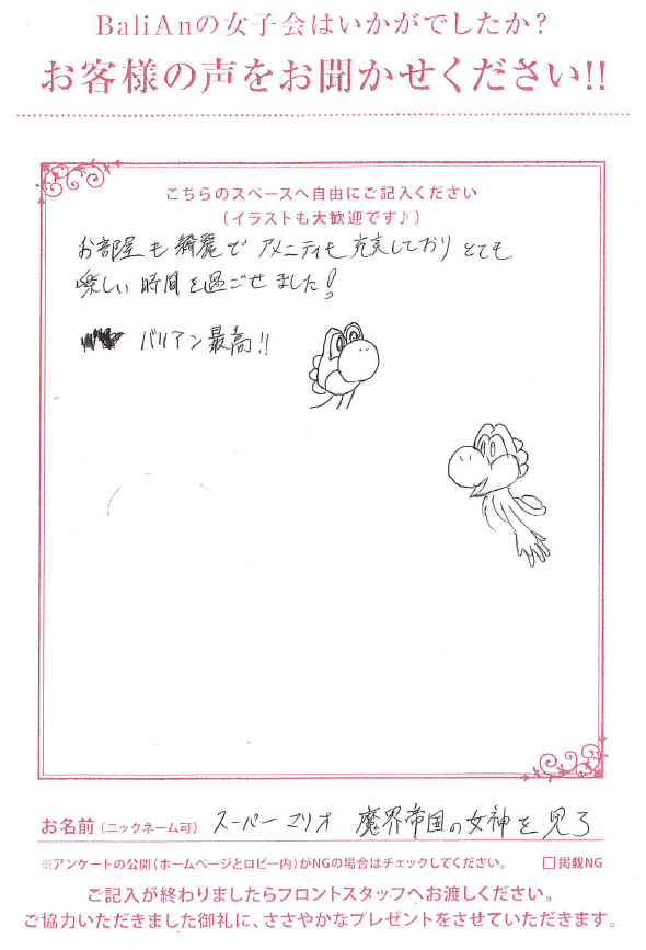 ~お客様のご満足が私達の喜びです~ホテルバリアンリゾートをご利用いただいたお客様から頂いたアンケート・口コミを掲載しております。