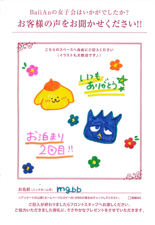~お客様のご満足が私達の喜びです~ホテルバリアンリゾートをご利用いただいたお客様から頂いたアンケート・口コミを掲載しております。