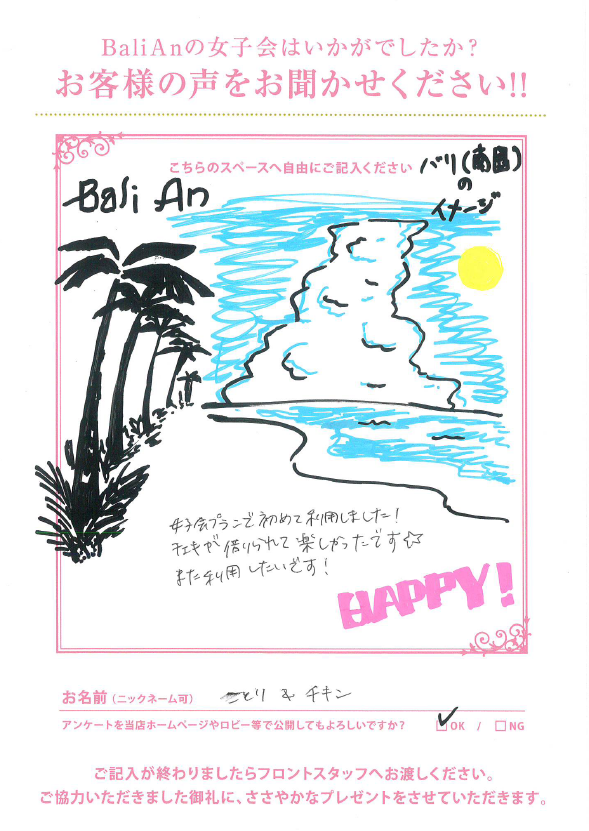 ホテルバリアンリゾートの女子会嬉しいお言葉頂きました