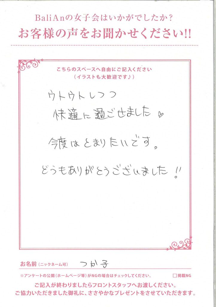 ~お客様のご満足が私達の喜びです~ホテルバリアンリゾートをご利用いただいたお客様から頂いたアンケート・口コミを掲載しております。