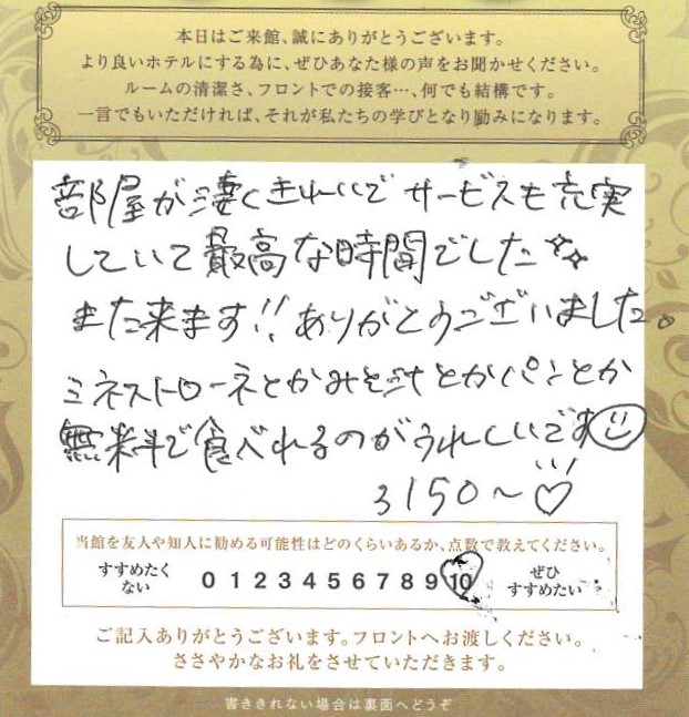 ホテルバリアンリゾート 嬉しいお言葉頂きました