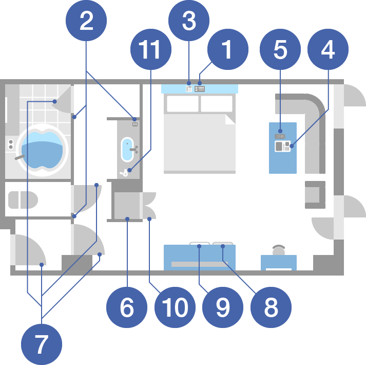 - 全客室のうち89%のお部屋に、ウィルスを不活性化させるプラズマクラスター機能つき空気清浄機を設置しています。